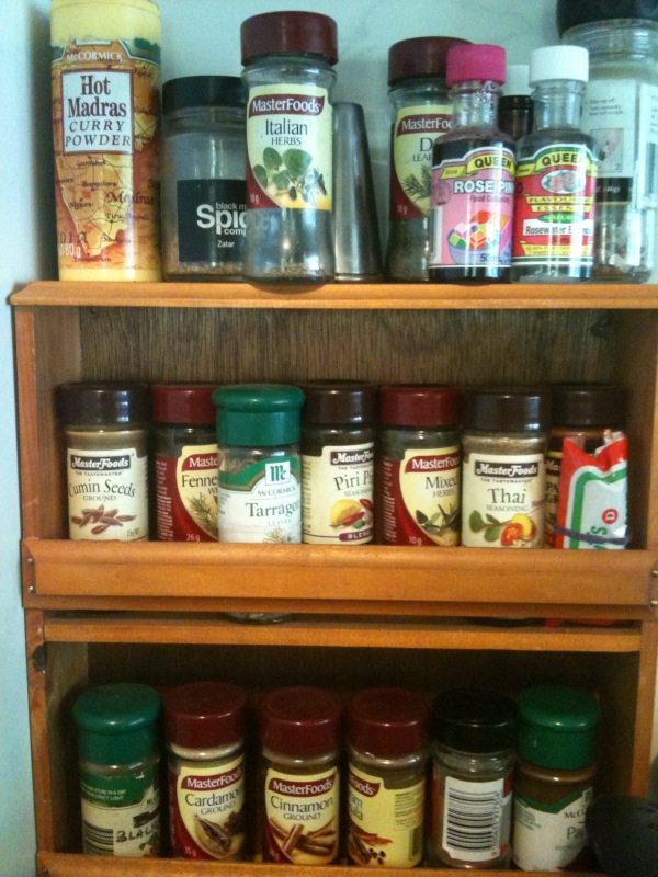 I have, this time, stopped short of alphabetising my spices... but hey, now I have blogging!(hmmm those spice jars are a little untidy...)
